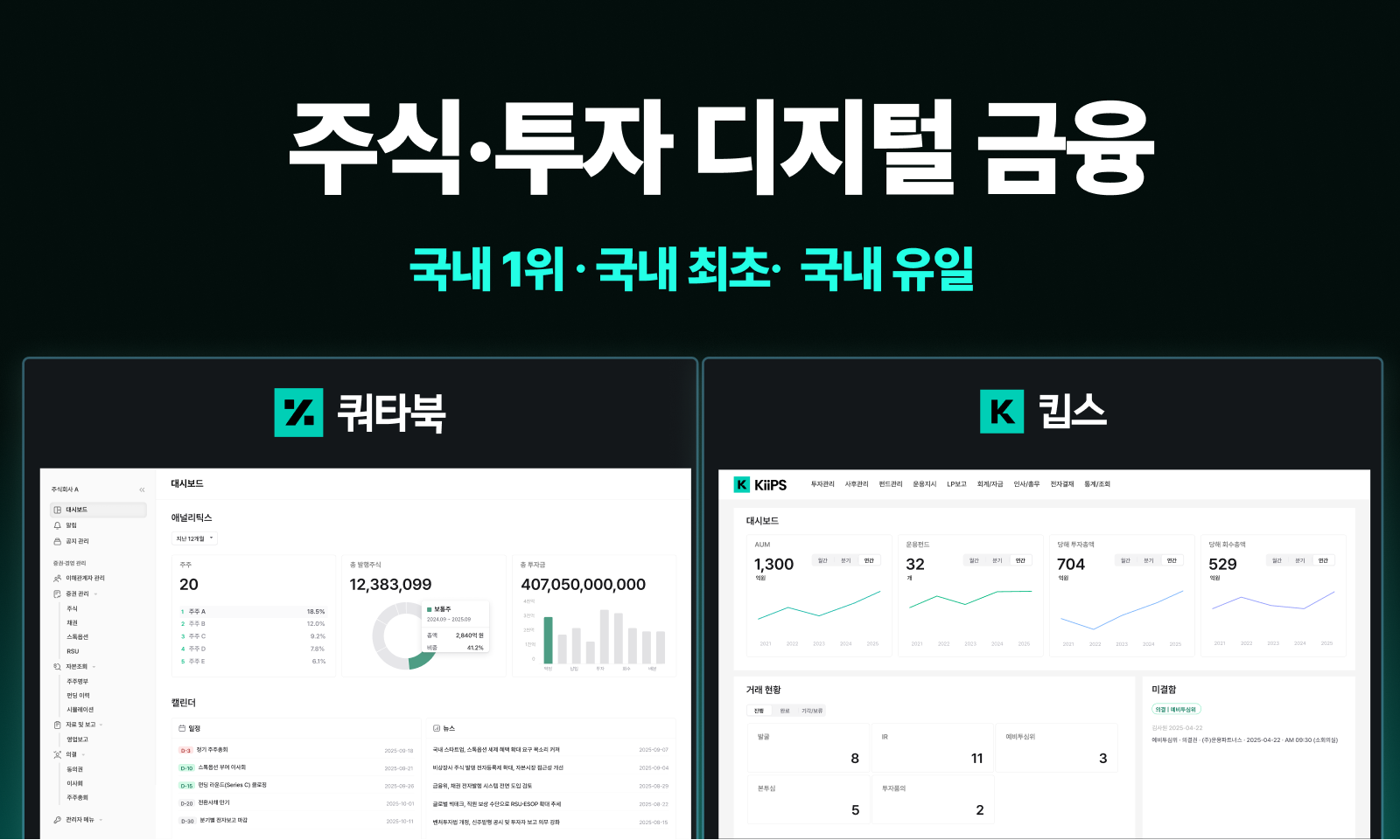 Visit Website 4F, 21, Teheran-ro 52-gil, Gangnam-gu, Seoul, Republic of Korea 02-6447-8004 rainy@quotalab.com D-06 [Company Introduction] Quota Lab, as an innovation partner in the private capital market, is building an independent financial infrastructure that connects companies and investors — enabling transparent and efficient management of capital flows. Through Korea’s first integrated financial platform, Quota Lab maximizes trust among market participants, revitalizes private investment, and supports the growth of innovative companies by fostering a virtuous cycle of capital. [Product Images]