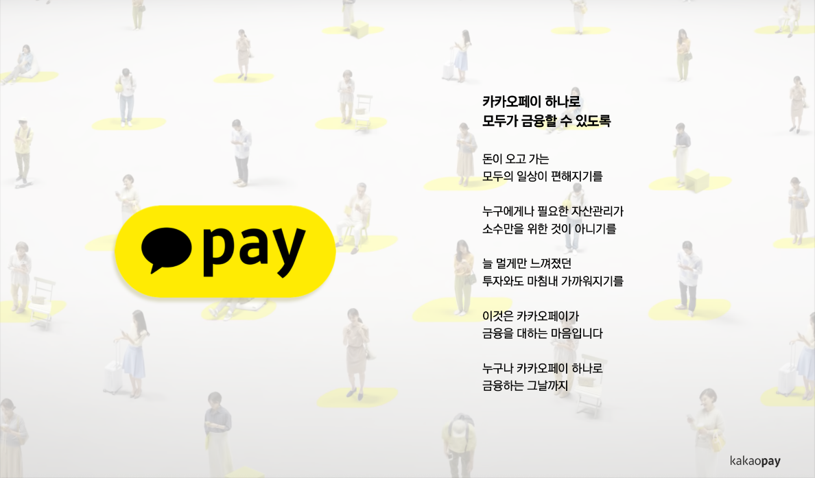 Visit Website 166, Pangyoyeok-ro, Bundang-gu, Seongnam-si, Gyeonggi-do, Republic of Korea 1644-7405 help@kakaopaycorp.com D-03 [Company Introduction] Lauched in April 2017, Kakao Pay Co., Ltd. is Kakao\'s Techfin subsidary, which has built a convenient and safe living finance platform on Kakao Talk and Kakao Pay apps, and has created a transition to a \'wallet-free society\' where you can engage in economic activities anytime, anywhere with a smartphone. [Product Images]