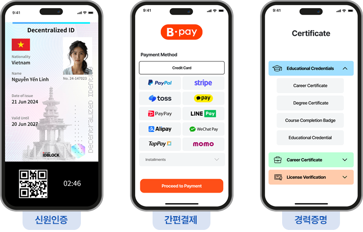 Visit Website 519, 5F, 123, Ogong-ro, Deokjin-gu, Jeonju-si, Jeonbuk-do, Republic of Korea 02-6975-9999 crosshub@crosshub.kr F-41 [Company Introduction] We are a fintech company specializing in blockchain-based digital identity and global payment solutions, enabling safe and seamless access to both financial and non-financial services. Our core technologies—IDBlock, B-Pay, and Digital Badge—address the essential needs of the financial ecosystem: security, reliability, and scalability. IDBlock is a decentralized identity (DID) solution that empowers users to manage their data securely and disclose it selectively. It eliminates vulnerabilities of centralized systems and helps financial institutions streamline KYC and AML processes. B-Pay is an integrated global payment solution that connects with international payment gateways and card networks, providing the same seamless experience for both locals and foreign users. It simplifies cross-border payments in tourism, education, healthcare, and trade, while lowering transaction complexity and costs. Digital Badge combines certification, rewards, and payments into one service. For example, issuing a digital diploma badge automatically processes fees through B-Pay and grants rewards. This innovation applies to tourist passes, event tickets, and certificates, delivering a unified “one-stop authentication and payment” experience. We are conducting PoCs with partners in Japan, Southeast Asia, and North America, aiming for rapid commercialization. Additionally, we actively participate in government R&D and international standardization to strengthen Korea’s fintech leadership. Our vision is to break boundaries between identity and payments, building a unified global financial infrastructure. Through innovation, we strive to make secure, user-friendly financial services accessible worldwide. [Product Images]
