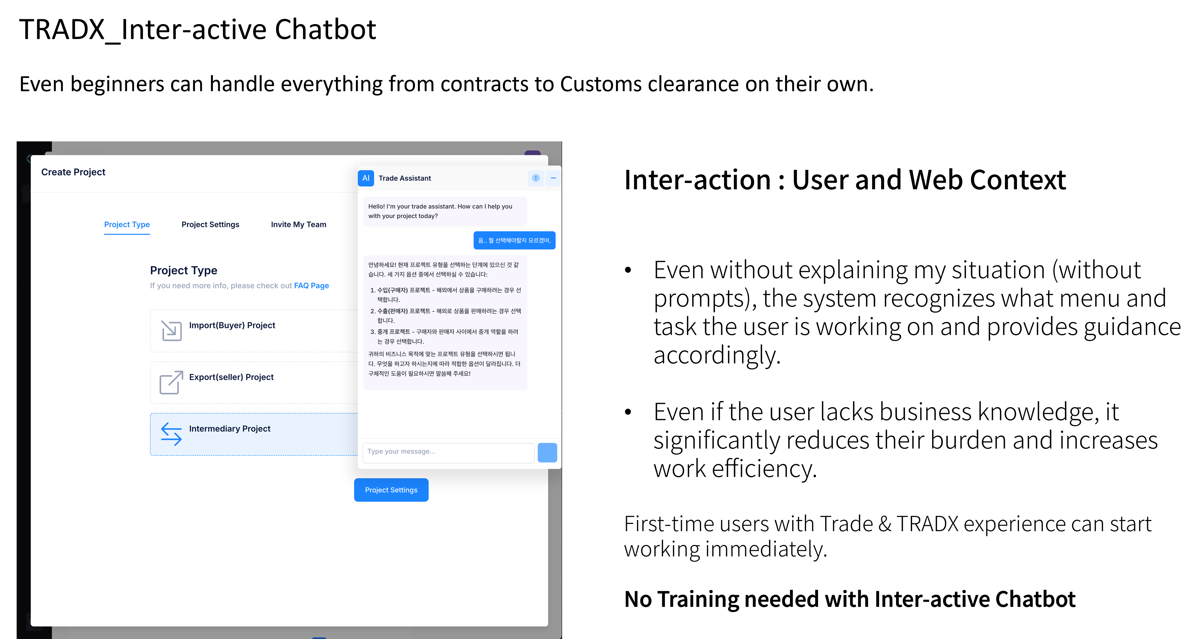 Visit Website 6025, 31, Gangnam-daero 92-gil, Gangnam-gu, Seoul, Republic of Korea 010-2823-0751 dps.kjlee@gmail.com F-03 [Company Introduction] T FLOW is an AI-powered solution that supports the digital transformation (DX) of trading companies. Background In the trading industry, even the most trusted method of payment—Letters of Credit (L/C)—frequently faces rejection due to discrepancies caused by human error. Repetitive tasks and high outsourcing fees paid to forwarders, customs brokers, and trade agents continue to burden companies. The lack of expertise in trade operations is a major cause, and there is a pressing need for a system that guides even beginners through the process. Core Solution T FLOW builds a database through L/C reviews and leverages historical data to automatically generate shipping documents, eliminating human error and minimizing payment risks. Its user-friendly guidance system empowers beginners to perform professional trade operations with confidence. Team Expertise The CEO has over 10 years of hands-on experience in international trade across the UAE and China, possessing deep domain knowledge of the field. The CTO is an AI expert who previously contributed to the development of IBM Watson at IBM’s AI Research Lab. Together, they combine expertise in both trade and AI to develop T FLOW. Vision T FLOW aims to lead the digital transformation of trade operations through a “Global Trade IT Platform” and drive industrial innovation with Vertical AI. Guided by the philosophy of “business for the nation,” the company seeks to contribute to foreign currency generation and social value creation. By securing access to the “closed data” within trading companies—data that Big Tech cannot reach—T FLOW will build overwhelming competitive advantage in Vertical AI and grow into a global trade IT platform based on universal protocols. [Product Images]