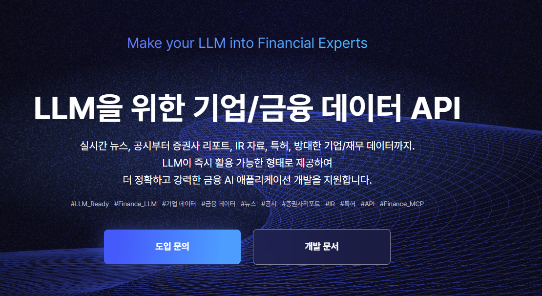 홈페이지 가기 서울시 영등포구 의사당대로 82, 11층 070-8711-3338 contact@deepsearch.com F-27 [기업소개] AI기술로 금융 도메인을 혁신합니다. 국민연금, 한국거래소 및 대형 금융 기관에서 기술력을 인정 받은 Financial AI 분야의 대표 기업입니다. [제품사진]