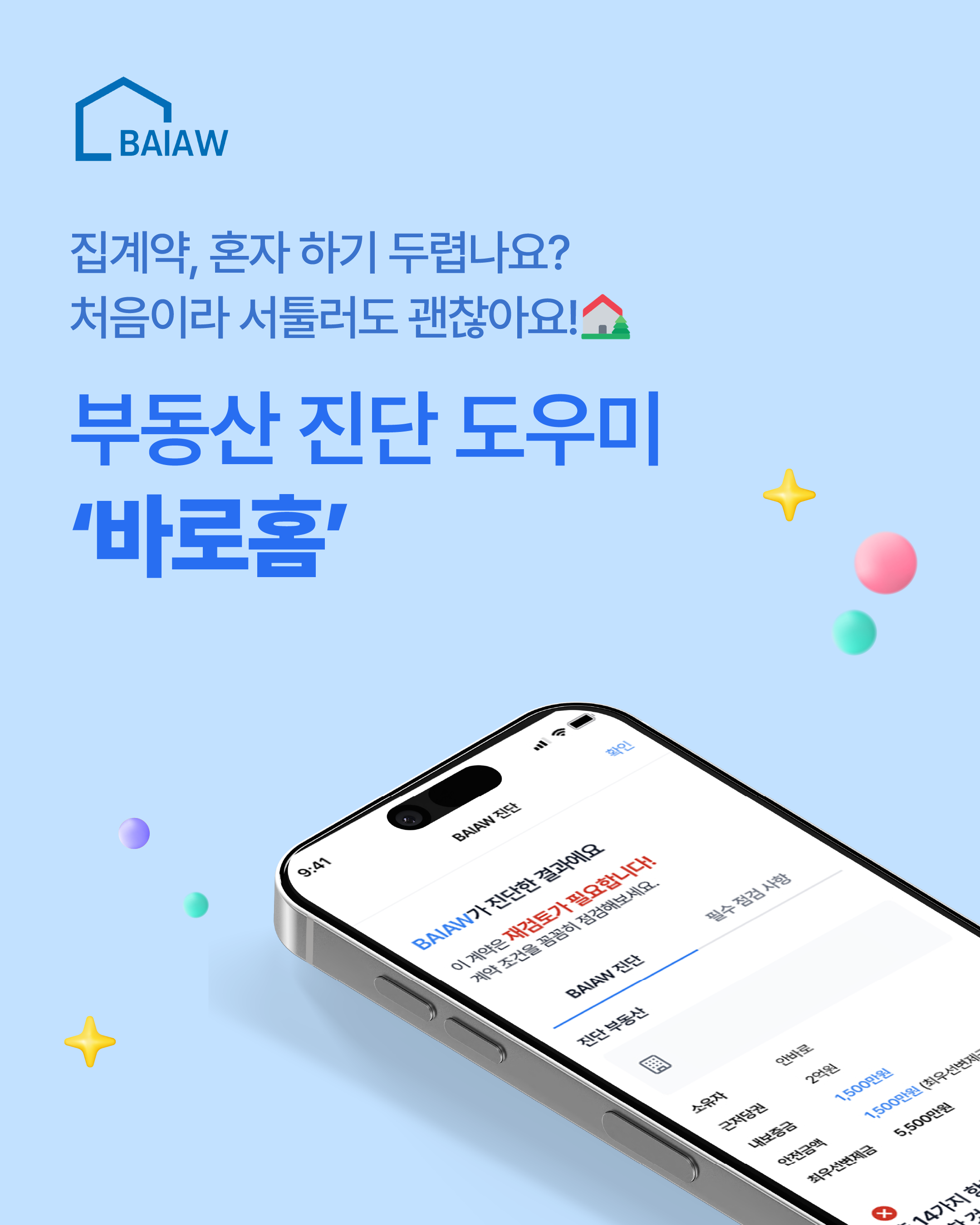 홈페이지 가기 부산광여시 남구 문현금융로 40 01048077513 dhkd634@gmail.com F-30 [기업소개] (주)바로코퍼레이션은 ‘안전한 주거문화는 단순한 복지가 아닌 기본권’이라는 신념을 바탕으로 2024년 부산에서 창립되었으며, 고유의 부동산 데이터 분석 기술과 RAG 기반 법률 상담 챗봇 서비스를 개발하고 있습니다. 특히 부동산 거래 시 발생할 수 있는 다양한 위험 요소를 사전 진단하고 예방할 수 있는 독자적 AI 솔루션을 통해, 기존 일회성 진단 플랫폼과 차별화된 사용자 경험을 제공하고 있습니다. 당사는 작년 중소벤처기업부 지원사업에서 최우수 성과로 졸업한 데 이어 국토교통부 장관상을 받은 바 있으며, 올해에는 중소벤처기업진흥공단의 청년창업사관학교 입교와 함께 여러 금융그룹 프로그램 선정과 창업경진대회 수상 등 성과를 계속 이어가고 있습니다. 또한 부산테크노파크, 부산정보산업진흥원 등과 협력 체계를 구축하며 공공 및 민간 데이터를 활용한 기술 실증과 사업화에 속도를 내고 있습니다. 이번 전시회에서 선보이는 AI 기반 부동산 분석 플랫폼 '바로홈'은 등기부등본, 건축물대장 등 주요 공공 데이터를 통합해, 부동산 거래와 관련된 위험 요소를 시각화하고 실시간으로 진단하는 기능을 통해 사용자에게 사전 예방적 판단 도구를 제공합니다. 특히 비전문가도 직관적으로 진단을 진행할 수 있어,부동산 거래 과정에서의 정보 비대칭 문제를 효과적으로 해소할 수 있다는 점에서 주목받고 있습니다. [제품사진]
